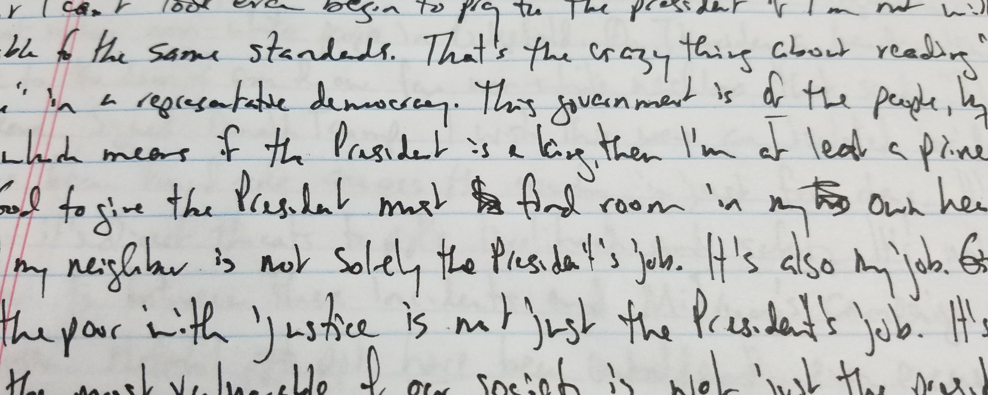 But I can’t even begin to pray for the president if I’m not willing to be accountable for the same standards. That’s the crazy thing about reading “Give the king your justice” in a representative democracy. This government is of the people, by the people and for the people. So if the President is a king, then I am at least a Prince. And the justice I am asking God to give the president must find room in my own heart. The right treatment of my neighbor is not solely the president’s job. It;s also my job. Treating the poor with justice is not just the president’s job. It’s my job as well. Defending the rights of the most vulnerable around us is not just the President’s responsibility. It is also my responsibility. I can’t beg god to give Mr. Trump a sense of justice unless I am just myself. I cannot beg God to give Mr. Trump a heart of empathy for the suffering and compassion for the struggling unless I am empathetic and compassionate. And I cannot beg Mr. Trump to listen to my neighbors unless I myself am willing to listen to my neighbors.