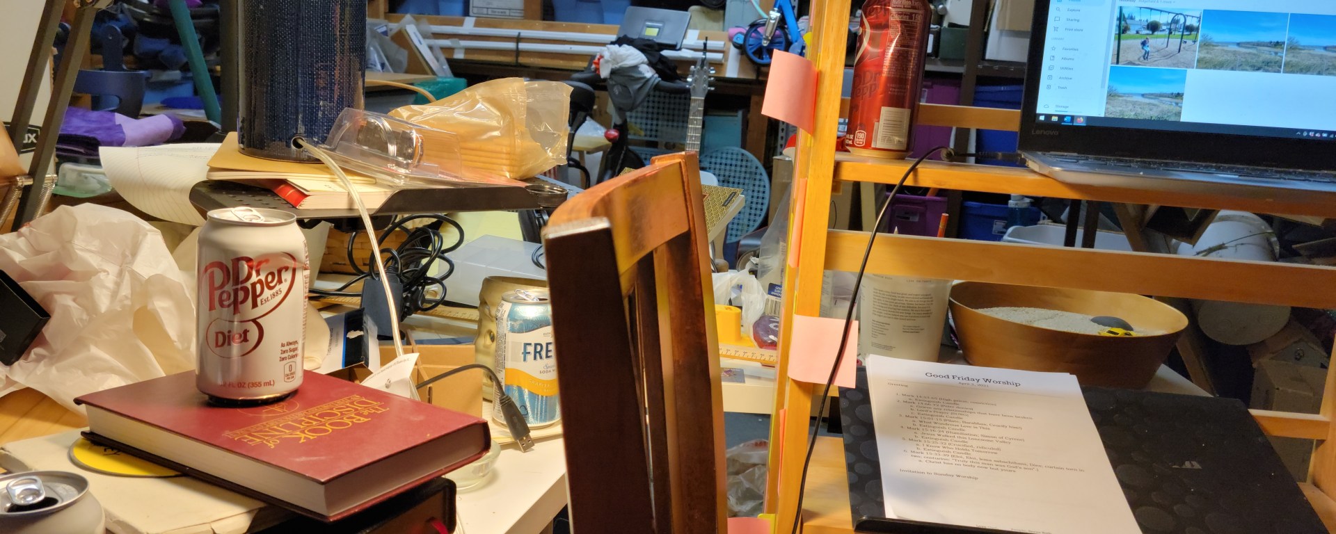 As we pronounced Jesus dead and buried, I also marked the last broadcast from the Garage-Church. Garage-Church has been my Church-away-from-Church since March 13, 2020, when COVID-19 struck our little town. A few days into the first week of the pandemic I turned on my Facebook Live for the first time and began talking into the air, hoping someone was there to hear. For 13 months now, this space has been my refuge. I have preached, taught, counseled, recorded, Zoomed, Facebooked, prayed and studied in this space. Like me, too often, the garage was cold, poorly lit, poorly connected, messy, smelly, cluttered and uncomfortable. At the same time, the Garage has mirrored how I have felt. As a metaphor for my spirit, the Garage has been unparalleled.